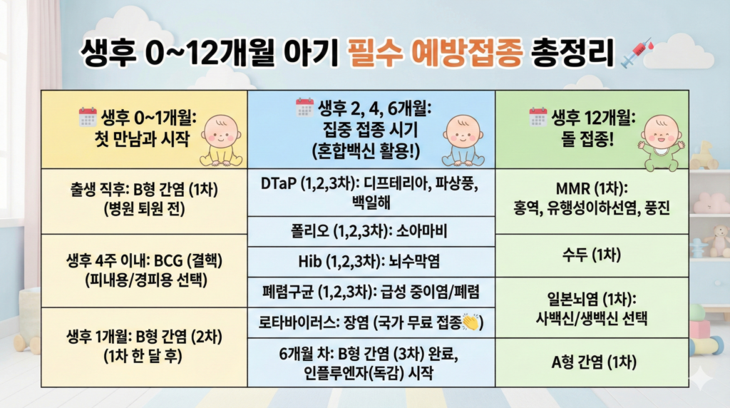 우리 소중한 아기의 건강한 성장을 위해, 생후 1년 동안 꼭 챙겨야 할 필수 예방접종 스케줄을 한눈에 보기 쉽게 정리해 드립니다!